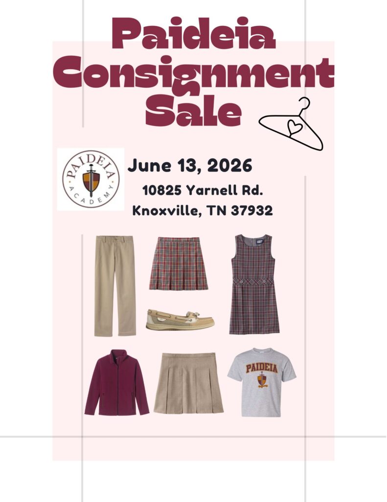 Thank you for making Knight Day a success by participating in the Consignment Sale! If you have any questions regarding this event, please email consignment@paideiaknoxville.org